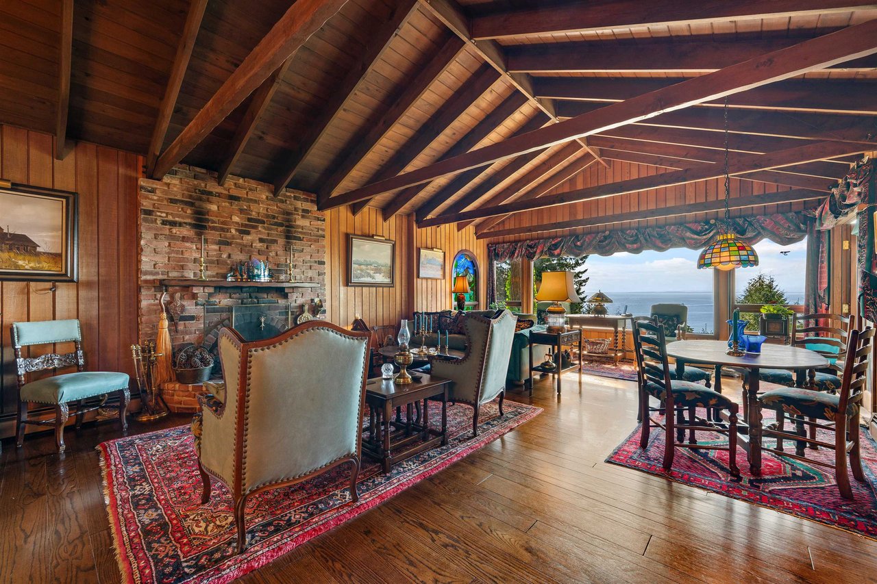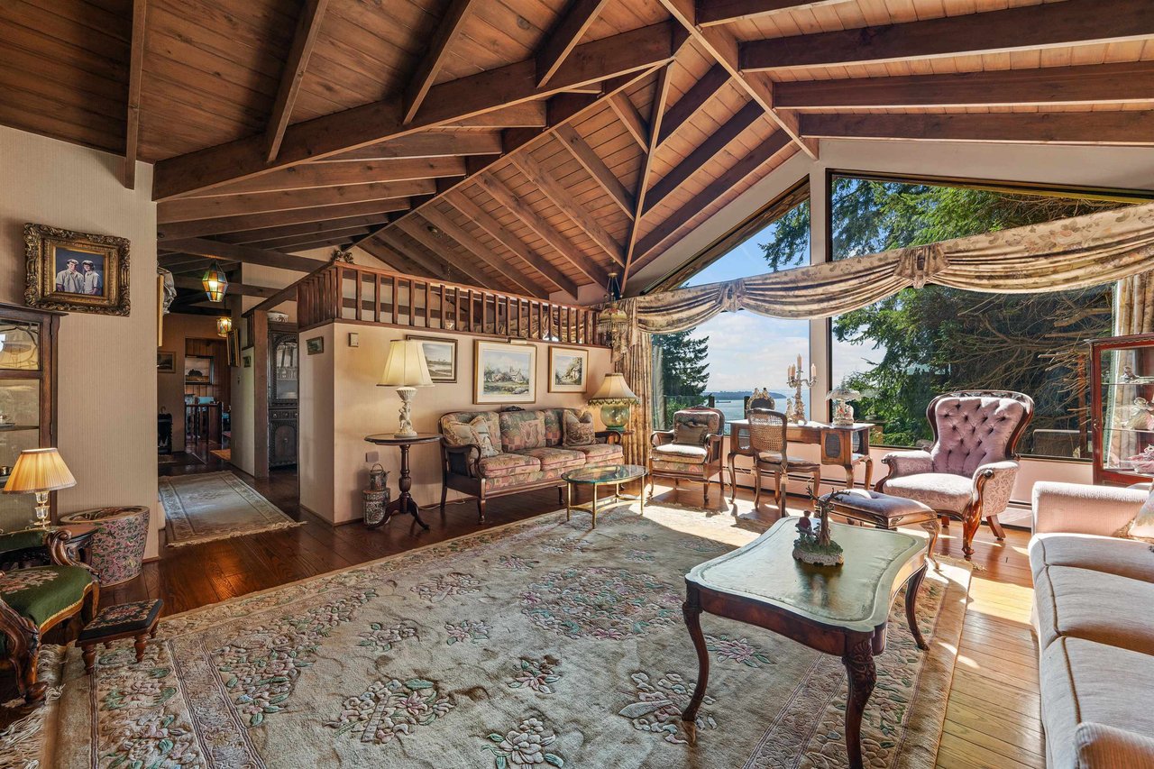 ARCHITECTURE & EPIC VIEWS, this iconic West Van residence is a rare offering! Set on almost 13,000 sq ft perfectly sloped property with SPECTACULAR SUNSETS, this architectural gem was originally custom built by Bob Lewis. A true example of exposed post-and-beam style, it features dramatic vaulted ceilings, Texas Select Oak flooring, specialized windows, and timeless design that blends naturally with its surroundings. VIEWS FROM EVERY LEVEL! Kitchen features Miele d/w, Wolf oven, Thermador cooktop, SubZero Fridge, and VIEWS FROM THE KITCHEN SINK! Spacious primary suite +2 more beds & den. Walking distance to Collingwood, this property offers valuable land and the irreplaceable architecture—a home of pedigree and vision.